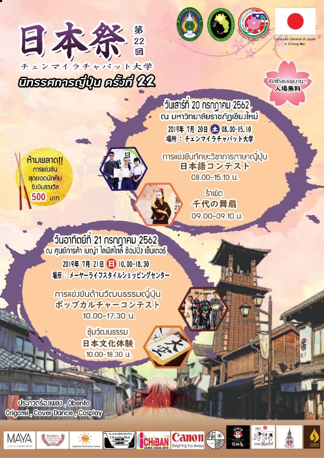สถานกงสุลใหญ่ญี่ปุ่น ณ นครเชียงใหม่ร่วมกับมหาวิทยาลัยราชภัฏเชียงใหม่ จัดงานนิทรรศการญี่ปุ่นหรือ “นิฮงไซ” ครั้งที่ 22 ขึ้นในวันที่ 20 - 21 กรกฎาคม พ.ศ.2562